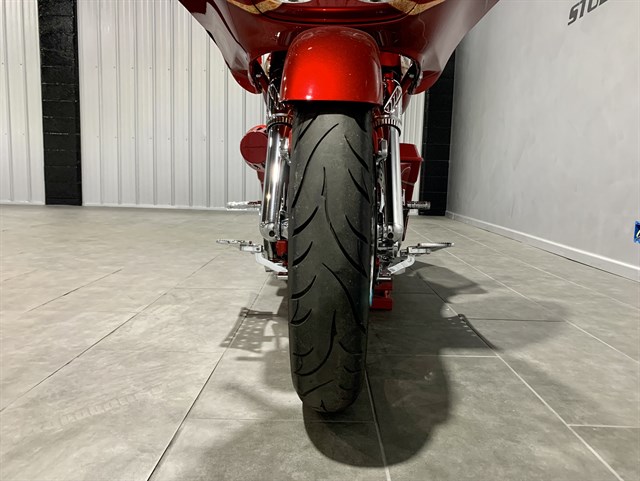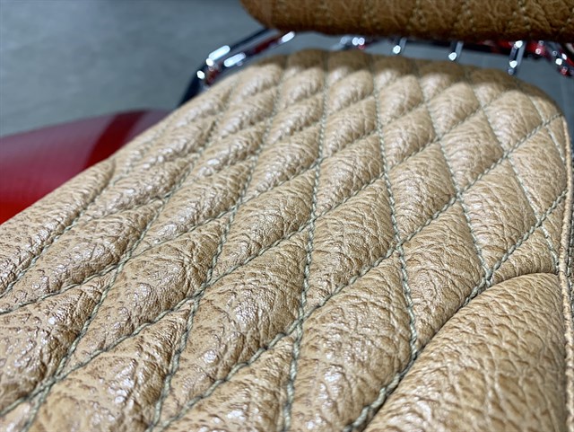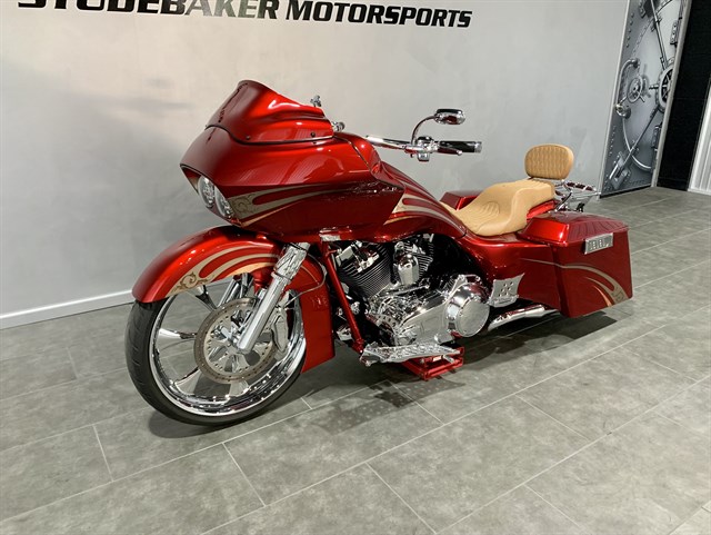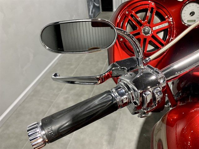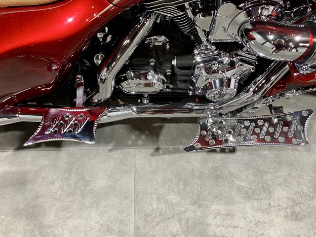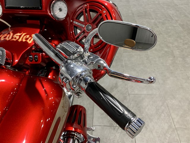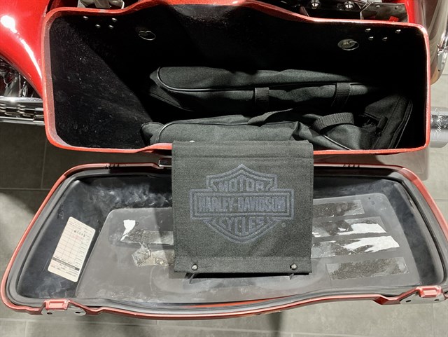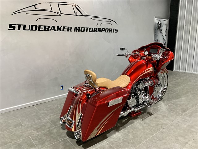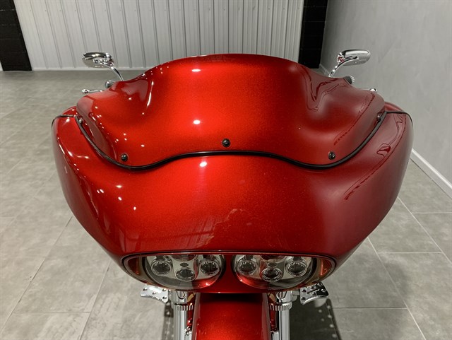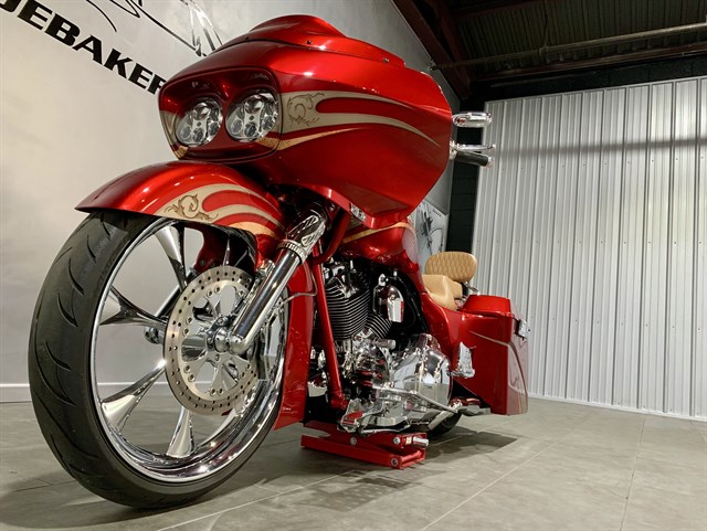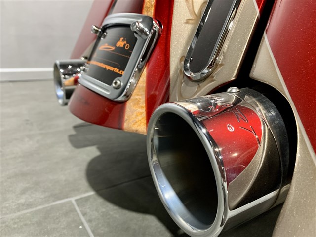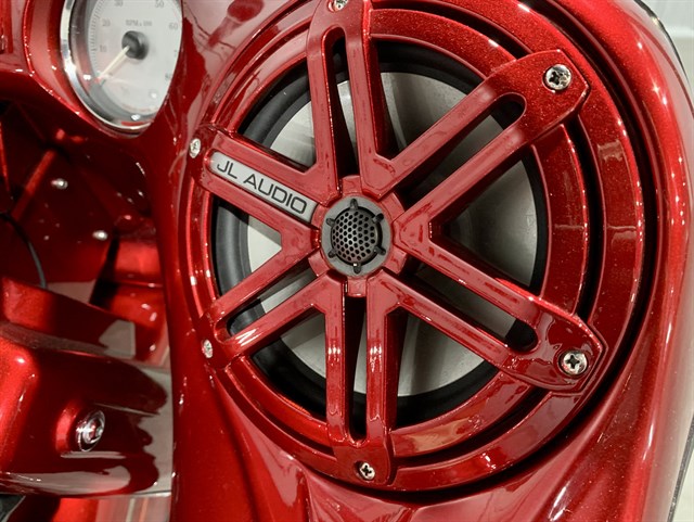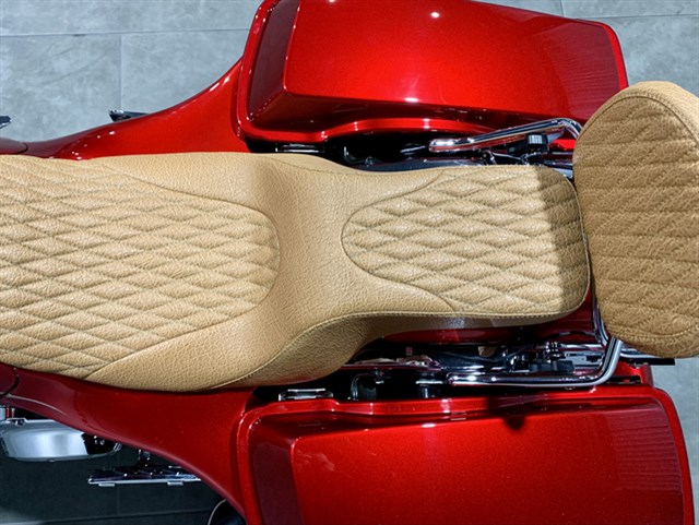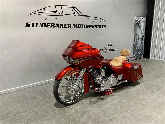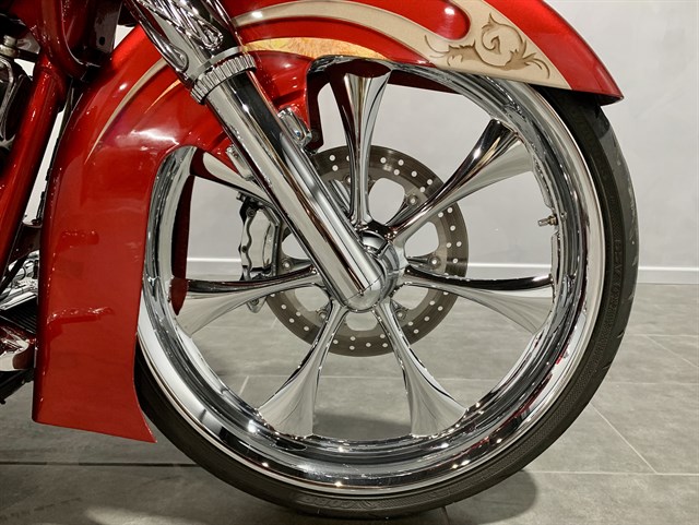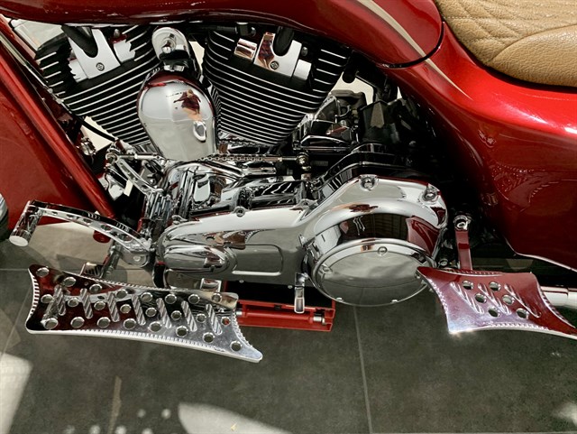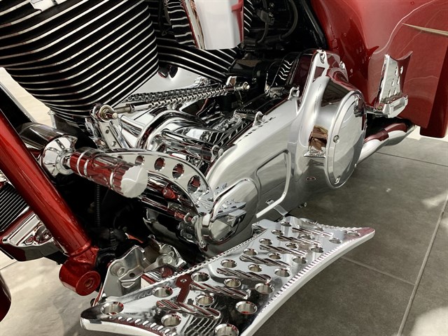 It's coated in gorgeous Candy Apple Red paint over silver base, champagne graphics and gold leaf accents. This bagger looks rich and classy!