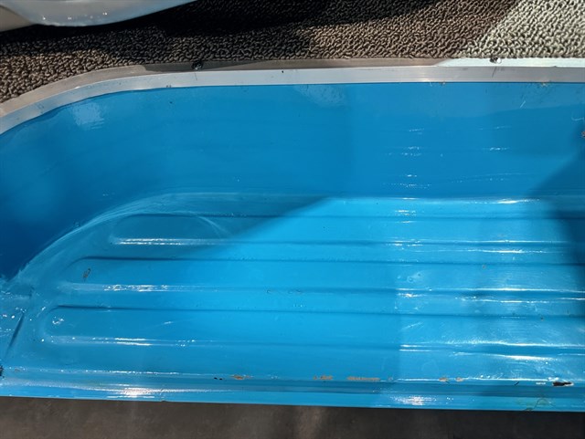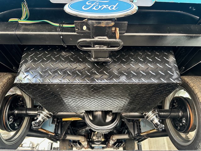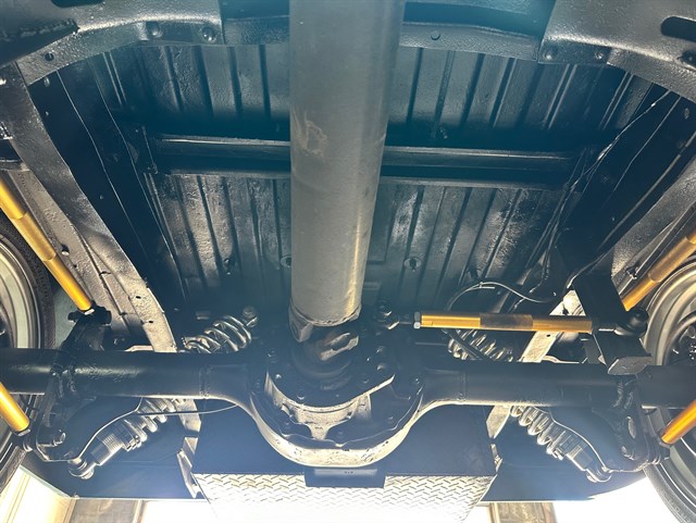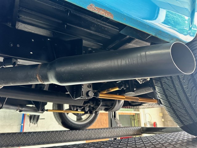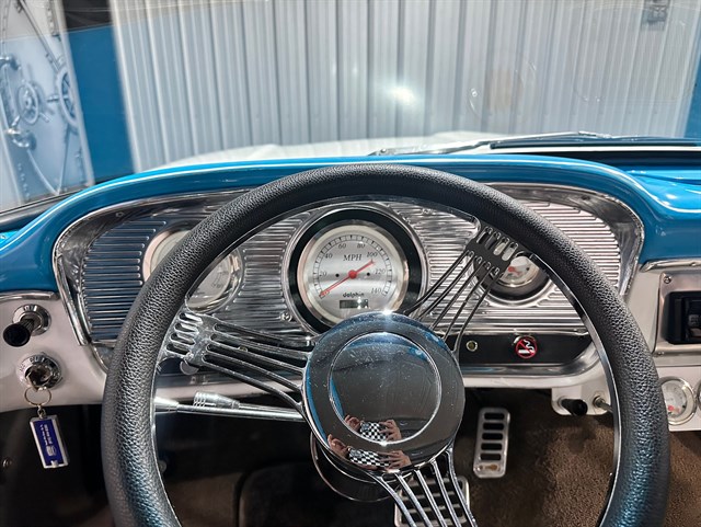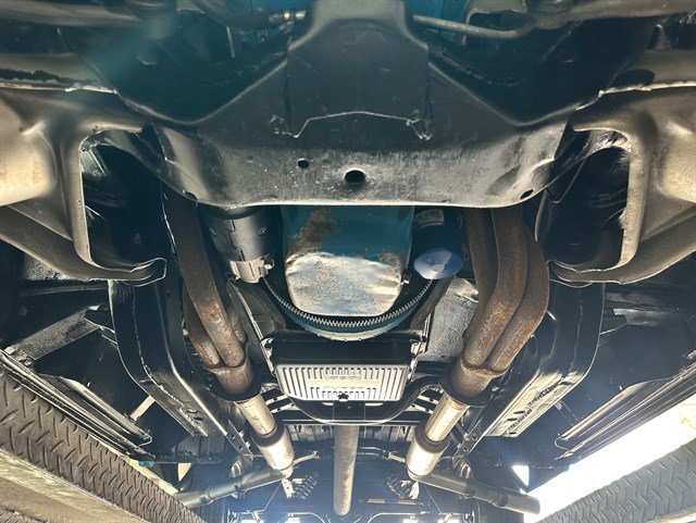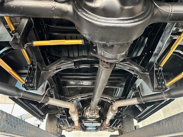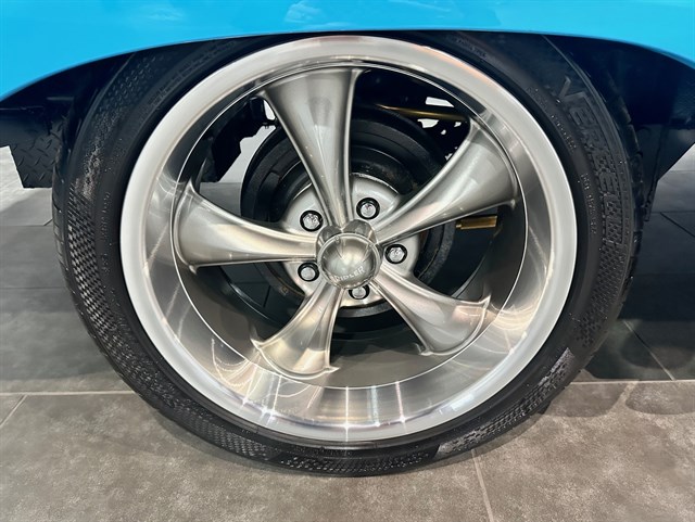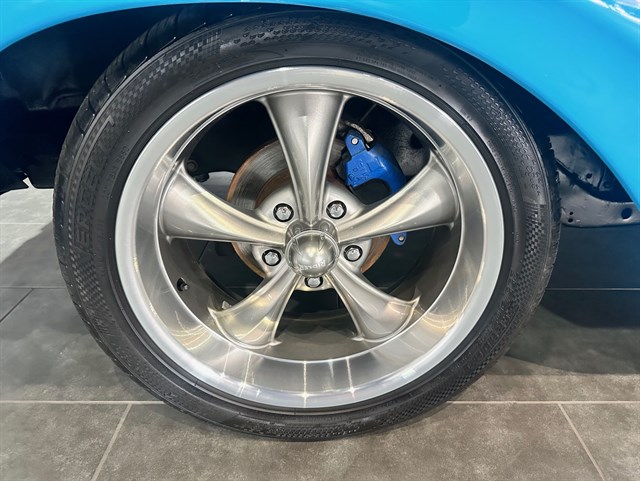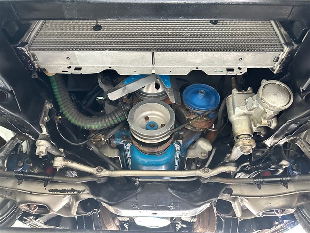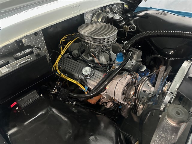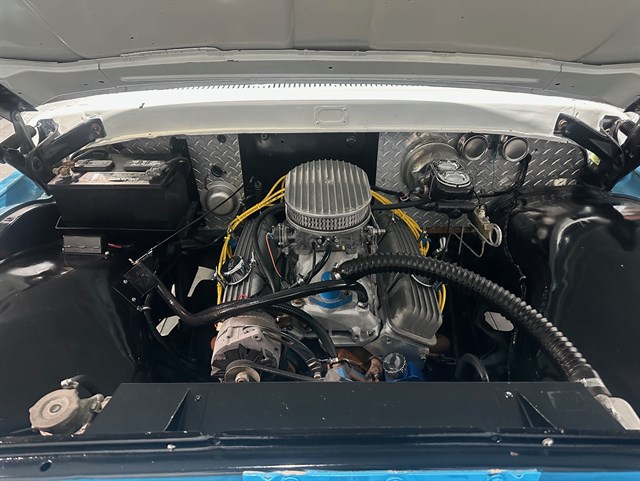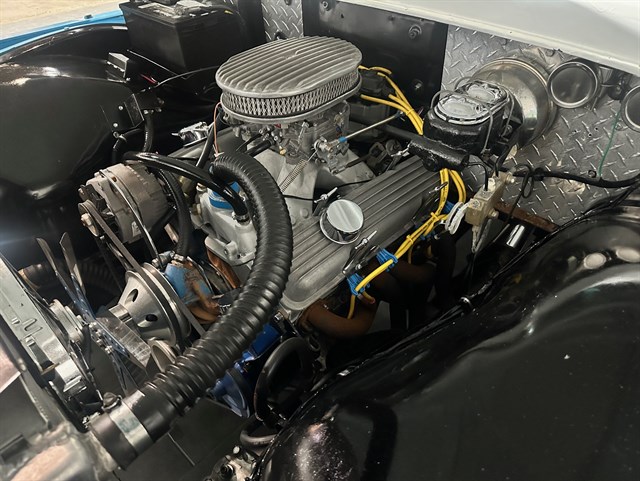 This vintage piece is powered by a 355 Chevy V8 engine paired with a 3 speed automatic 350 turbo transmission. Edelbrock carburetor, headers, dual exhaust, aluminum heads, radiator, intake and electric fan.
